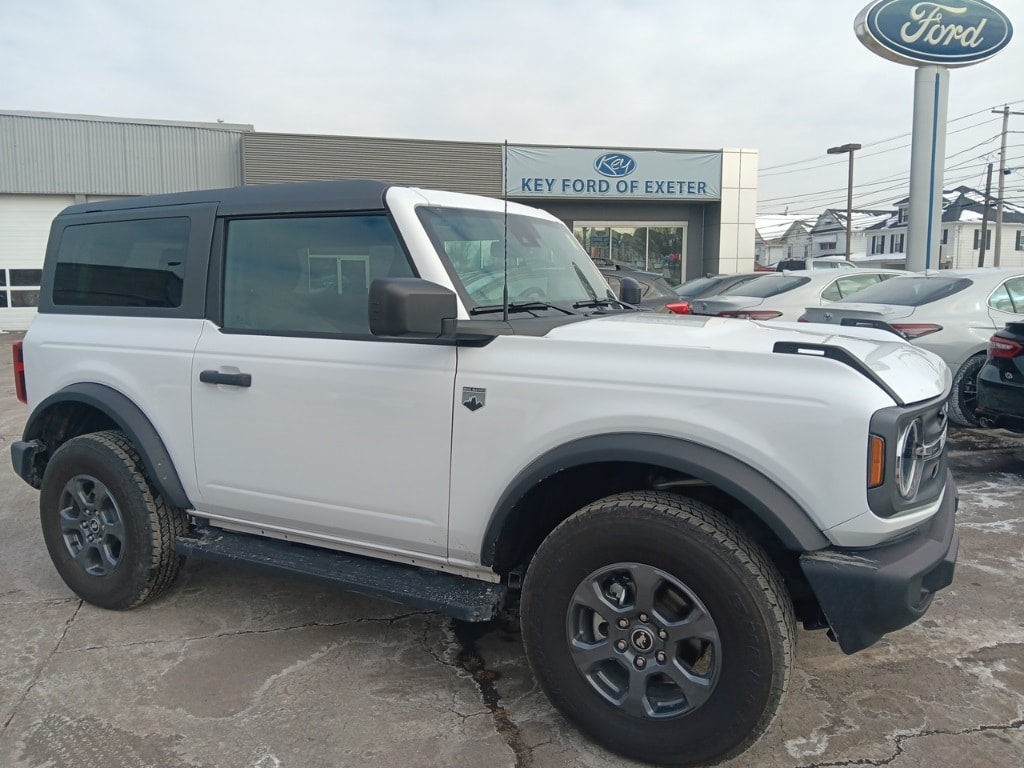 KEY FORD OF EXETER is proud to present you with another True Market Priced Pre-Owned Vehicle. Transparent Pricing Of $ 35577 !! This 2024 Ford Bronco Big Bend is loaded with the following Factory Options: Equipment Group 222A Mid Package (2-Door Intelligent Access w/Lock/Unlock, Ambient Footwell Lighting, Auto-Dimming Interior Rear-View Mirror, Connected Navigation, Dr & Pass Illuminated Sliding Visor Vanity Mirrors, Dual Smart Charging USB Ports, Dual-Zone Electronic Automatic Temperature Control, Front Row Heated Seats, Power Outlet - Back Side of Center Floor Console, and Rear Parking Sensors), 4-Wheel Disc Brakes, 4.46 Axle Ratio, 7 Speakers, ABS brakes, Air Conditioning, Alloy wheels, AM/FM radio: SiriusXM with 360L, AM/FM Stereo, Auto High-Beam Headlamps, Auto High-beam Headlights, BLIS Blind Spot Information System, Brake assist, Compass, Convertible HardTop, Convertible roof lining, Delay-off headlights, Driver door bin, Driver vanity mirror, Dual front impact airbags, Dual front side impact airbags, Electronic Stability Control, Emergency communication system: 911 Assist, Exterior Parking Camera Rear, Front anti-roll bar, Front Bucket Seats, Front Center Armrest, Front fog lights, Front License Plate Bracket, Front reading lights, Front wheel independent suspension, Fully automatic headlights, Glass rear window, Heated door mirrors, Illuminated entry, Integrated roll-over protection, Lane-Keeping System, Leather Shift Knob, Low tire pressure warning, Marine Grade Vinyl Bucket Seats, Occupant sensing airbag, Outside temperature display, Overhead airbag, Overhead console, Panic alarm, Passenger door bin, Passenger vanity mirror, Powder Coated Tube Step, Power door mirrors, Power steering, Power windows, Pre-Collision Assist w/Automatic Emergency Braking, Radio data system, Rear window defroster, Rear window wiper, Rear-View Camera, Remote keyless entry, Security system, SiriusXM Radio w/360L, Speed control, Split folding rear seat, Steering wheel mounted audio controls, SYNC 4, Tachometer, Telescoping steering wheel, Tilt steering wheel, Traction control, Trip computer, Variably intermittent wipers, and Wheels: 17" Carbonized Gray-Painted Aluminum!!