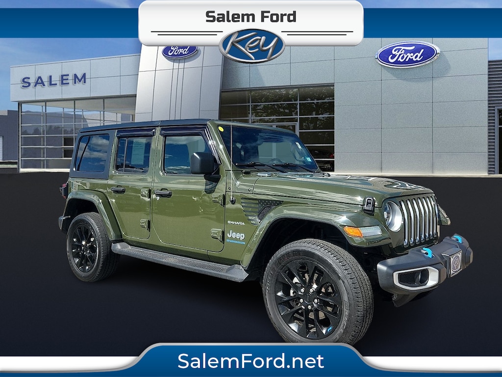 "Priced below KBB Fair Purchase Price!*ONE OWNER* *CLEAN HISTORY REPORT* ***PLEASE CALL 603-898-9766*** 2.0L I4 DOHC Apple CarPlay/Android Auto.*****At Salem Ford you win!***** ****PLEASE CALL 603-898-9766****We make the car buying process very simple by displaying the lowest price on the window. We price our vehicles more aggressively than anyone else in the area. For that reason we're proud to display it on every vehicle's window.We believe there is more to buying a vehicle than worrying about the price. For that reason Key Auto has simplified that process for our customers. When we price a vehicle we take the following into consideration: 1) market conditions 2) what the area dealers are selling them for 3) Kelly Blue Book* retail. This way when you leave a Key Auto Dealership you're confident you've received the absolute best deal.CARFAX One-Owner.Certified. Certification Program Details: Ford Blue Advantage: Blue Certified* 139 Point Inspection* Transferable Warranty* Vehicle History* Warranty Deductible: $100* Roadside Assistance* Limited Warranty: 3 Month/4000 Mile (whichever comes first) after new car warranty expires or from certified purchase date* and 11000 FordPass Rewards Points to use toward first maintenance visit 2023 Jeep Wrangler Sahara 4xe 4D Sport Utility Sarge Green Clearcoat Sahara 4xe 4WD 8-Speed AutomaticSalem Ford is proud to present you with another True Market Priced Pre-Owned Vehicle. Transparent Pricing Of $ 29580 !! This 2023 Jeep Wrangler Sahara 4xe Ford Blue Advantage: Blue Certified is loaded with the following Factory Options: 2.0L I4 DOHC and Apple CarPlay/Android Auto Cold Weather Group (Heated Front Seats and Heated Steering Wheel) Dual Top Group (Premium Black Sunrider Soft Top w/Dual Top Group) Quick Order Package 29P Sahara Ford Blue Advantage: Blue Certified Certified 2.0L I4 DOHC Apple CarPlay/Android Auto 4-Wheel Disc Brakes 9 Speakers ABS brakes Air Conditioning AM/FM radio: SiriusXM Auto-dimming Rear-View mirror Automatic temperature control Black 3-Piece Hard Top Brake assist Compass Delay-off headlights Driver door bin Driver vanity mirror Dual front impact airbags Dual front side impact airbags Electronic Stability Control Emergency communication system: SiriusXM Guardian Freedom Panel Storage Bag Front anti-roll bar Front Bucket Seats Front Center Armrest w/Storage Front dual zone A/C Front fog lights Front License Plate Bracket Front reading lights Fully automatic headlights Garage door transmitter Heated door mirrors Illuminated entry Integrated roll-over protection Leather Shift Knob Low tire pressure warning MOPAR All-Weather Floor Mats Navigation System Occupant sensing airbag Outside temperature display Panic alarm ParkView Rear Back-Up Camera Passenger door bin Passenger vanity mirror Power door mirrors Power steering Power windows Premium McKinley Trimmed Seats Radio data system Radio: Uconnect 4C Nav w/8.4""Display Rear anti-roll bar Rear reading lights Rear seat center armrest Rear Window Defroster Rear Window Wiper/Washer Remote keyless entry Security system Side Steps Speed control Split folding rear seat Sport Suspension Steering wheel mounted audio controls Tachometer Telescoping steering wheel Tilt steering wheel Traction control Trip computer Variably intermittent wipers Voltmeter and Wheels: 20""x 8""Fully Painted Aluminum!!2.0L I4 DOHC"
