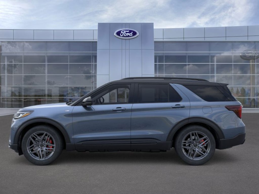 This Explorer ST-Line is nicely equipped with Equipment Group 300A Standard Package, Premium Package (110V/150W AC Power Outlet, 2nd Row Heated Seats, Ambient Lighting, Auto-Dimming Interior Rear-View Mirror, Memory Driver's Seat, Power-Folding Sideview Mirrors w/Autofold, Rain-Sensing Wipers (Front Only), and Wireless Charging Pad), ST-Line Street Pack (Performance Brakes, Red Painted Perf Front & Rear Brake Calipers, and Wheels: 21" Magnetite-Painted Aluminum), 4WD, 10 Speakers, 2nd Row Captain's Chairs w/E-Z Entry & Armrest, 3.58 Non-Limited Slip Rear Axle, 3rd row seats: bench, 4-Wheel Disc Brakes, ABS brakes, Air Conditioning, Alloy wheels, AM/FM radio: SiriusXM with 360L, Apple CarPlay/Android Auto, Auto High-beam Headlights, Automatic temperature control, Black Painted Roof, Brake assist, Bumpers: body-color, Compass, Delay-off headlights, Driver door bin, Driver vanity mirror, Dual front impact airbags, Dual front side impact airbags, Electronic Stability Control, Emergency communication system: 911 Assist, Exterior Parking Camera Rear, Four wheel independent suspension, Front anti-roll bar, Front Bucket Seats, Front Center Armrest, Front dual zone A/C, Front fog lights, Front reading lights, Fully automatic headlights, Garage door transmitter, Heated door mirrors, Heated front seats, Heated steering wheel, Heated Unique Cloth Captain's Chairs, Illuminated entry, Knee airbag, Leather steering wheel, Low tire pressure warning, Navigation System, Occupant sensing airbag, Outside temperature display, Overhead airbag, Overhead console, Panic alarm, Panoramic Vista Roof w/Power Shade, Passenger door bin, Passenger vanity mirror, Power door mirrors, Power driver seat, Power Liftgate, Power passenger seat, Power steering, Power windows, Radio: B&O Sound System by Bang & Olufsen, Rear air conditioning, Rear anti-roll bar, Rear reading lights, Rear window defroster, Rear window wiper, Remote keyless entry, SecuriCode Keyless Entry Keypad, Security system, Speed control, Speed-sensing steering, Speed-Sensitive Wipers, Split folding rear seat, Spoiler, Steering wheel mounted audio controls, Tachometer, Telescoping steering wheel, Tilt steering wheel, Traction control, Trip computer, Variably intermittent wipers, and Wheels: 20" Ebony-Painted Machined Aluminum. Price includes: $1500 - Bonus Customer Cash. Exp. 01/05/2026
