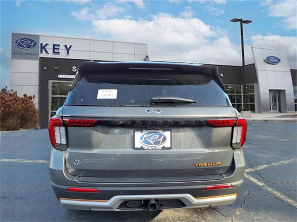 KEY FORD OF EXETER is proud to present you with another True Market Priced Vehicle. This 2026 Ford Explorer Tremor is loaded with the following Factory Options: 4WD 4WD, 10 Speakers, 3rd row seats: bench, 4-Wheel Disc Brakes, ABS brakes, Air Conditioning, Alloy wheels, AM/FM radio: SiriusXM with 360L, Apple CarPlay/Android Auto, Auto High-beam Headlights, Automatic temperature control, Brake assist, Bumpers: body-color, Compass, Delay-off headlights, Driver door bin, Driver vanity mirror, Dual front impact airbags, Dual front side impact airbags, Electronic Stability Control, Emergency communication system: 911 Assist, Exterior Parking Camera Rear, Four wheel independent suspension, Front anti-roll bar, Front Bucket Seats, Front Center Armrest, Front dual zone A/C, Front fog lights, Front reading lights, Fully automatic headlights, Garage door transmitter, Heated door mirrors, Heated front seats, Heated rear seats, Heated steering wheel, Heated/Ventilated Miko Suede Captain's Chairs, Illuminated entry, Knee airbag, Leather steering wheel, Low tire pressure warning, Navigation System, Occupant sensing airbag, Outside temperature display, Overhead airbag, Overhead console, Panic alarm, Passenger door bin, Passenger vanity mirror, Power door mirrors, Power driver seat, Power Liftgate, Power passenger seat, Power steering, Power windows, Radio: B&O Sound System by Bang and Olufsen, Rear air conditioning, Rear anti-roll bar, Rear reading lights, Rear window defroster, Rear window wiper, Remote keyless entry, Security system, Speed control, Speed-sensing steering, Speed-Sensitive Wipers, Split folding rear seat, Spoiler, Sport steering wheel, Steering wheel mounted audio controls, Tachometer, Telescoping steering wheel, Tilt steering wheel, Traction control, Trip computer, Variably intermittent wipers, Ventilated front seats, and Wheels: 18" High Gloss Black-Painted Aluminum!! Price includes: $2500 - Retail Customer Cash. Exp. 03/31/2026