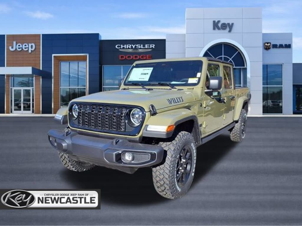 Key Chrysler Dodge Jeep Ram Newcastle is proud to present you with another True Market Priced Vehicle. This 2026 Jeep Gladiator Willys is loaded with the following Factory Options: Convenience Group (Air Conditioning with Auto Temp Control, Cluster 7.0" TFT Color Display, Corning Gorilla Glass, Daytime Running Lamp System, Emergency/Assistance Call, Front Door Locks 2-Door Passive Entry, Heated Front Seats, Heated Steering Wheel, Remote Start System, and Universal Garage Door Opener), Quick Order Package 24W Willys (2-Piece Body Color Fender Flares, 4-Wheel Drive Decal, Advanced Brake Assist, Automatic Headlamps, Auxiliary Switches, Black Grille with Gloss Black Rings, Class IV Receiver Hitch, Daytime Running Lamps LED Accents, Deep Tint Sunscreen Windows, E-Locker Rear Axle, Front Heavy Duty Red Accent Shock Absorbers, Front LED Fog Lamps, Full Speed Forward Collision Warning Plus, Heavy-Duty Engine Cooling, LED Premium Reflector Headlamps, LED Taillamps, Mold in Color Bumper with Gloss Black, MOPAR All-Weather Slush Mats, Off-Road Plus Mode, Power Heated Mirrors, Premium Wrapped Steering Wheel, Protection Sill Rails, Rear Heavy Duty Red Accent Shock Absorbers, Security Alarm, Sun Visors with Illuminated Vanity Mirrors, Trailer Hitch Zoom, Wheels: 17" x 7.5" Painted Black, Willys Hood Decal, and Willys Suspension), 110 Mph Vehicle Max Speed Calibration, 12.3" Touchscreen Display, 3.73 Rear Axle Ratio, 4-Wheel Disc Brakes, 4G LTE Wi-Fi Hot Spot, 8 Speakers, ABS brakes, Air Conditioning, Alexa Built-in, AM/FM radio: SiriusXM with 360L, Apple CarPlay, Apple CarPlay/Android Auto, Black 3-Piece Hard Top, Brake assist, Compass, Connectivity - US/Canada, Delay-off headlights, Driver door bin, Driver vanity mirror, Dual front impact airbags, Dual front side impact airbags, Electronic Stability Control, For Details, Visit DriveUconnect.com, Freedom Panel Storage Bag, Front anti-roll bar, Front Bucket Seats, Front Center Armrest w/Storage, Front fog lights, Front License Plate Bracket, Front reading lights, Google Android Auto, Illuminated entry, Integrated Center Stack Radio, Integrated roll-over protection, Low tire pressure warning, Manufacturer's Statement of Origin, MOPAR Spray in Bedliner, Normal Duty Suspension, Occupant sensing airbag, Outside temperature display, Overhead airbag, Panic alarm, ParkView Rear Back-Up Camera, Passenger door bin, Passenger vanity mirror, Power steering, Power windows, Radio data system, Radio: Uconnect 5 with 12.3" Display, Rear anti-roll bar, Rear reading lights, Rear Sliding Window, Rear Window Defroster, Remote keyless entry, SiriusXM Radio Service, SiriusXM with 360L, Speed control, Split folding rear seat, Steering wheel mounted audio controls, Tachometer, Telescoping steering wheel, Tilt steering wheel, Traction control, Trip computer, USB Host Flip, Variably intermittent wipers, Voltmeter, and Wheels: 17" x 7.5" Black Steel Styled!!