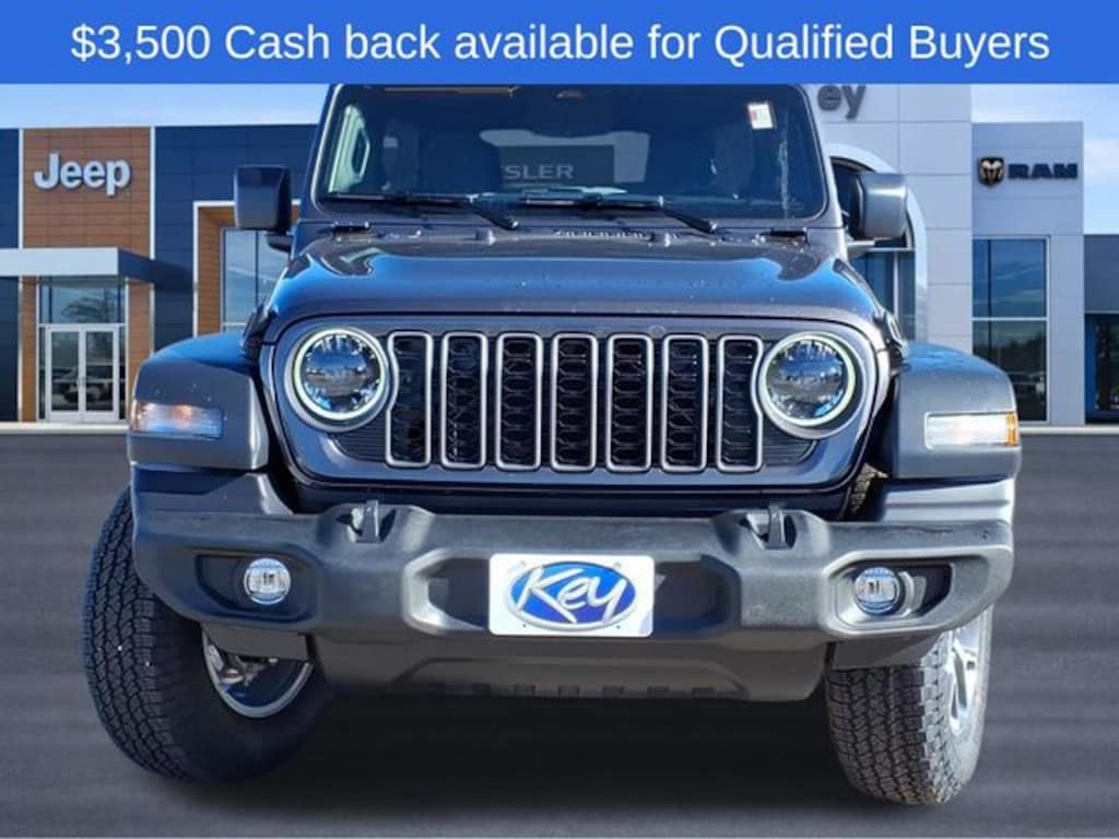 Key Chrysler Dodge Jeep Ram of Rochester is proud to present you with another True Market Priced Vehicle. This 2026 Jeep Wrangler Sport S is loaded with the following Factory Options: Convenience Group (2-Door Passive Entry, Front Door Locks, Air Conditioning with Auto Temp Control, Air Filtering, Cluster 7.0" TFT Color Display, Emergency/Assistance Call, Heated Front Seats, Heated Steering Wheel, and Universal Garage Door Opener), LED Headlamp and Fog Lamp Group (Front LED Fog Lamps and LED Premium Reflector Headlamps), Quick Order Package 22S Sport S (Advanced Brake Assist, Automatic Headlamps, Corning Gorilla Glass, Deep Tint Sunscreen Windows, Enhanced Adaptive Cruise Control, Full Speed Forward Collision Warning Plus, Power Heated Mirrors, Premium Wrapped Steering Wheel, Security Alarm, Sun Visors with Illuminated Vanity Mirrors, and Wheels: 17" x 7.5" Gray), 12.3" Touchscreen Display, 3.45 Overall Top Gear Ratio, 4-Wheel Disc Brakes, 4G LTE Wi-Fi Hot Spot, 8 Speakers, ABS brakes, Air Conditioning, AM/FM radio: SiriusXM with 360L, Apple CarPlay, Apple CarPlay/Android Auto, Aux Battery, Black 3-Piece Hard Top, Brake assist, Compass, Connectivity - US/Canada, Delay-off headlights, Driver door bin, Driver vanity mirror, Dual front impact airbags, Dual front side impact airbags, Electronic Stability Control, For More Info, Call 800-643-2112, Freedom Panel Storage Bag, Front anti-roll bar, Front Bucket Seats, Front Center Armrest w/Storage, Front fog lights, Front reading lights, Google Android Auto, Illuminated entry, Integrated Center Stack Radio, Integrated roll-over protection, Low tire pressure warning, Manufacture Statement of Origin, No Soft Top, Non-Lock Fuel Cap Without Discriminator, Normal Duty Suspension, Occupant sensing airbag, Outside temperature display, Overhead airbag, Panic alarm, ParkView Rear Back-Up Camera, Passenger door bin, Passenger vanity mirror, Power steering, Power windows, Radio data system, Radio: Uconnect 5 with 12.3" Display, Rear anti-roll bar, Rear reading lights, Rear Window Defroster, Rear Window Wiper/Washer, Remote keyless entry, SiriusXM Radio Service, SiriusXM with 360L, Speed control, Split folding rear seat, Steering wheel mounted audio controls, Stop-Start Dual Battery System, Tachometer, Telescoping steering wheel, Tilt steering wheel, Traction control, Trip computer, Variably intermittent wipers, Wheels: 17" x 7.5" Black Steel Styled, and Wheels: 17" x 7.5" Machined with Black Pockets!! Call us to ask about conditional rebates. Price includes: $3500 - 2026 National Select Inventory Bonus Cash . Exp. 01/04/2027