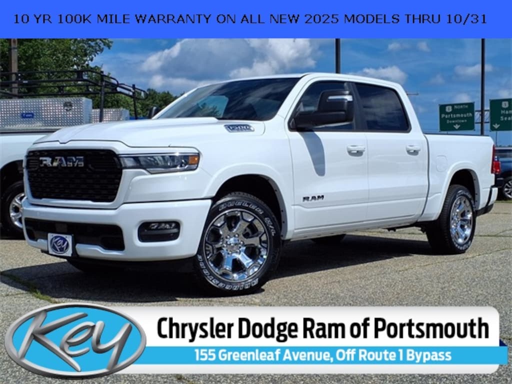Key Chrysler Dodge Ram of Portsmouth is proud to present you with another True Market Priced Vehicle. This 2025 Ram 1500 Big Horn/Lone Star is loaded with the following Factory Options: Big Horn Level 2 Equipment Group (115V Auxiliary Power Outlet, 115V Auxiliary Rear Power Outlet, 12" Touchscreen Display, 2nd Row In Floor Storage Bins, 400W Inverter, 4G LTE Wi-Fi Hot Spot, 9 Amplified Speakers w/Subwoofer, Air Conditioning ATC w/Dual Zone Control, Apple CarPlay, Auto Power-Folding Mirrors, Auto-Dimming Exterior Driver Mirror, Auto-Dimming Rear-View Mirror, Black Exterior Mirrors, Black Premium Power Mirrors, Cluster 7.0" TFT Color Display, Configurable Drive Mode, Connected Travel & Traffic Services, Connectivity - US/Canada, Convex Wide-Angle Exterior Mirror Insert, Exterior Mirrors Courtesy Lamps, Exterior Mirrors w/Heating Element, Exterior Mirrors w/Supplemental Signals, Glove Box Lamp, Google Android Auto, GPS Antenna Input, GPS Navigation, HD Radio, Heated Front Seats, Heated Steering Wheel, Integrated Voice Command w/Bluetooth, Leather Wrapped Steering Wheel, LED Dome Lamp w/On/Off Switch, LED Footwell Lighting, Media Hub w/2 Charge Only USBs, Overhead LED Lamps, Power 2-Way Driver Lumbar Adjust, Power Adjust 8-Way Driver Seat, Power Adjustable Pedals, Premium Overhead Console, Radio: Uconnect 5 Nav w/12.0" Display, Rear Power Sliding Window, Rear Window Defroster, Remote Tailgate Release, Security Alarm, SiriusXM w/360L, Steering Wheel Mounted Audio Controls, Sun Visors w/Illuminated Vanity Mirrors, Universal Garage Door Opener, and USB Host Flip), Quick Order Package 21Z Big Horn, Sport Appearance Package (3 Rear Seat Head Restraints, 4 Way Front Headrests, Black Interior Accents, Body Color Door Handles, Body Color Front Bumper, Body Color Rear Bumper w/Step Pads, Body Color Tailgate Handle, Bucket Seats, Deluxe Cloth Bucket Seats, Front Seat Back Map Pockets, Full Length Floor Console, Grille Surround 1 Body Color Texture 1 Black, Manual Adjust 4-Way Front Passenger Seat, RAM Grille Badge - Chrome, Rear 60/40 Folding Seat, and Rear Center Armrest), Towing Technology Group (Trailer Hitch Line-Up Assist), Trailer Tow Group (Accent Color Tailgate Handle, Black Trailer Tow Power Mirrors, Manual Folding Exterior Mirrors, Manual Telescoping Mirrors, Mirror Clearance/Running Lights, Power-Adjustable Convex Aux Mirrors, Trailer Brake Control, Trailer Reverse Steering Control, Trailer Tire Pressure Monitoring System, and Trailer Tow Mirrors), 4-Wheel Disc Brakes, 6 Speakers, ABS brakes, Air Conditioning, Alloy wheels, AM/FM radio, Apple CarPlay/Android Auto, Auto High-beam Headlights, Brake assist, Bumpers: chrome, Cloth Bench Seat, Compass, Delay-off headlights, Driver door bin, Dual front impact airbags, Dual front side impact airbags, Electronic Stability Control, Front anti-roll bar, Front Center Armrest w/Storage, Front fog lights, Front License Plate Bracket, Front reading lights,