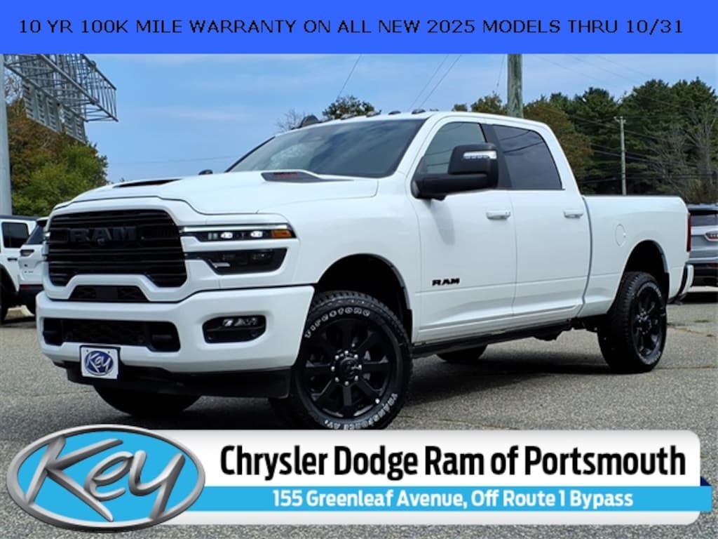 Key Chrysler Dodge Ram of Portsmouth is proud to present you with another True Market Priced Vehicle. This 2025 Ram 2500 Laramie is loaded with the following Factory Options: Laramie Level 2 Plus Equipment Group (#1 Seat Foam Cushion, 115V Auxiliary Rear Power Outlet, 14.4" Touchscreen Display, 17 Speaker harman/kardon Premium Sound, 2 Way Rear Headrest Seat, 2nd Row In Floor Storage Bins, 4 Way Front Headrests, 4G LTE Wi-Fi Hot Spot, Active Lane Management System, Adaptive Steering System, Alexa Built-In, Anti-Spin Differential Rear Axle, Apple CarPlay, Auto Adjust In Reverse Exterior Mirrors, Auto Dim Exterior Mirror, Auto High Beam Headlamp Control, Auto Power-Folding Mirrors, Auto-Dimming Exterior Passenger Mirror, Bucket Seats, Chrome Exterior Mirrors, Connected Travel & Traffic Services, Connectivity - US/Canada, CTR Stop Lamp w/Cargo View Camera, Disassociated Touchscreen Display, Drowsy Driver Detection, Dual Wireless Charging Pad, Emergency Vehicle Alert System (EVAS), Exterior Mirrors Courtesy Lamps, Exterior Mirrors w/Heating Element, Exterior Mirrors w/Memory, Exterior Mirrors w/Supplemental Signals, Foam Bottle Insert (Door Trim Panel), Folding Flat Load Floor Storage, Forward & Reverse Utility Lights, Front Seat Back Map Pockets, Full Length Upgraded Floor Console, Global Telematics Box Module (TBM), Google Android Auto, GPS Antenna Input, GPS Navigation, HD Radio, Heated Front Seats, Heated Steering Wheel, High Back Seats, Integrated Voice Command w/Bluetooth, Leather Trimmed Bucket Seats, LED Bed Lighting, Mirror Running Lights, MOPAR Deployable Bed Step, MOPAR Spray In Bedliner, Off-Road Info Pages, Power 2-Way Driver Lumbar Adjust, Power 2-Way Passenger Lumbar Adjust, Power Adjust 8-Way Driver Seat, Power Adjust 8-Way Front Passenger Seat, Power Adjust Mirrors, Power Adjustable Convex Aux Mirrors, Power Adjustable Pedals w/Memory, Power Deployable Running Boards, Power Heated Fold Telescopic Mirrors w/Memory, Power Telescoping Mirrors, Radio: Uconnect 5 Nav w/14.4" Display, Rain Sensitive Windshield Wipers, Rear 60/40 Folding Seat, Remote Tailgate Release, Selectable Tire Fill Alert, SiriusXM Radio Service, SiriusXM w/360L, Traffic Sign Recognition, and Trailer Tow Pages), Night Edition (Black Exterior Mirrors, Black Exterior Truck Badging, Black Wheel Center Hub, Body Color Grille Surround, Gloss Black Grille Billets/Accents, Sport Performance Hood, and Wheels: 20" x 8.0" Black Painted Aluminum), Quick Order Package 2UH Laramie, Towing Technology Group (Surround View Camera System, Trailer Reverse Guidance, and Trailer Tire Pressure Monitoring System), 10 Speakers, 3.73 Axle Ratio, 4-Wheel Disc Brakes, ABS brakes, Air Conditioning, Alloy wheels, AM/FM radio: SiriusXM with 360L, Apple CarPlay/Android Auto, Auto-dimming Rear-View mirror, Automatic temperature control, Brake assist, Bumpers: body-color, Clearance Lamps, Compass, Dash Pass Thru Wire Circuits, Delay-off headlights, Driv