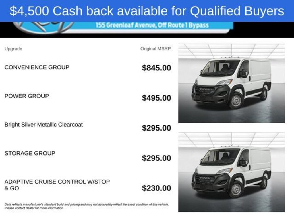 - Mobility Assistance Offer: $1,000 cash back on select 2025 Ram ProMaster 1500Details