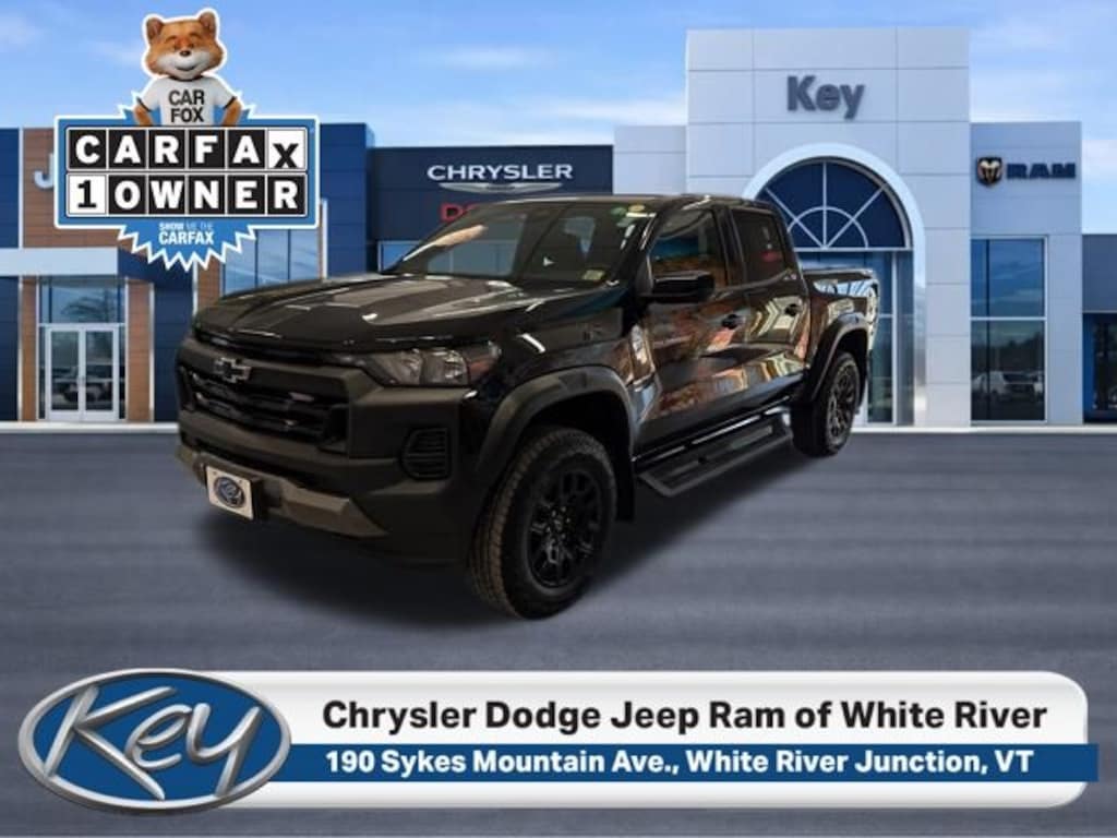 Key Chrysler Dodge Jeep Ram of White River is proud to present you with another True Market Priced Pre-Owned Vehicle. Transparent Pricing Of $ 35499 !! This 2024 Chevrolet Colorado Trail Boss is loaded with the following Factory Options: 4WD Advanced Trailering Package (Trailering App), Heavy-Duty Trailering Package (Integrated Trailer Brake Controller), Preferred Equipment Group 0TR (Automatic Emergency Braking, Chevy Safety Assist, Following Distance Indicator, Forward Collision Alert, Front Pedestrian & Bicyclist Braking, IntelliBeam Automatic High Beam On/Off, and Lane Keep Assist w/Lane Departure Warning), Safety Package (Black Painted Mirror Caps, Heated Power-Adjustable Outside Mirrors, Rear Cross Traffic Braking, and Rear Park Assist), Technology Package (Adaptive Cruise Control, HD Surround Vision, Rear Pedestrian Alert, and Tailgate Keyed Cylinder Lock), Trail Boss Convenience Package (Electronic Automatic Cruise Control, Manual Rear-Sliding Window, and Rear-Window Electric Defogger), Trail Boss Convenience Package II (8-Way Power Driver Seat Adjuster, EZ-Lift & Lower Tailgate, Power Driver Lumbar Control Seat Adjuster, and StowFlex Tailgate Storage Compartment), 4WD, 220 Amp Generator, 3.42 Rear Axle Ratio, 4-Way Manual Passenger Seat Adjuster, 4-Wheel Disc Brakes, 6 Speakers, 6-Speaker Audio System Feature, 6-Way Manual Driver Seat Adjuster, ABS brakes, Air Conditioning, Alloy wheels, AM/FM radio: SiriusXM, Apple CarPlay/Android Auto, Auto High-beam Headlights, Blind Zone Steering Assist w/Trailering, Brake assist, Cloth Seat Trim, Compass, Delay-off headlights, Driver door bin, Driver vanity mirror, Dual front impact airbags, Dual front side impact airbags, Electronic Stability Control, Front anti-roll bar, Front Bucket Seats, Front Center Armrest, Front License Plate Kit, Front wheel independent suspension, Illuminated entry, Low tire pressure warning, Navigation System, Occupant sensing airbag, Outside temperature display, Overhead airbag, Overhead console, Panic alarm, Passenger door bin, Passenger vanity mirror, Power door mirrors, Power steering, Power windows, Radio data system, Radio: 11.3" Diagonal Advanced Color LCD Display, Rear reading lights, Rear step bumper, Remote keyless entry, Security system, SiriusXM Radio, Speed-sensing steering, Split folding rear seat, Steering Wheel Mounted Audio Controls, Steering wheel mounted audio controls, Tachometer, Tilt steering wheel, Traction control, Trip computer, Variably intermittent wipers, Wheels: 18" x 8.5" Black High Gloss Aluminum, and Wireless Phone Projection!!