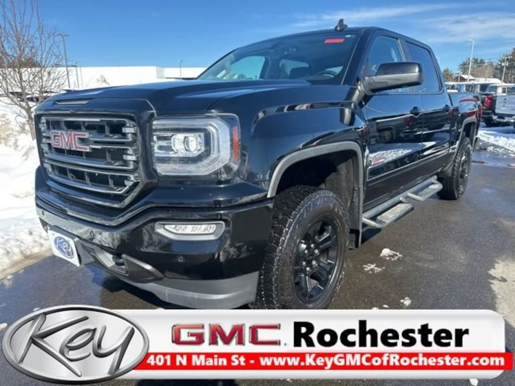 Key GMC Of Rochester is proud to present you with another True Market Priced Pre-Owned Vehicle. This 2016 GMC Sierra 1500 SLT is loaded with the following Factory Options: 8-Speed Automatic with Overdrive, 4WD, and Jet Black/Spice Red All-Terrain Leather All Terrain X Edition (1st & 2nd Row Color-Keyed Carpeted Floor Mats, All-Weather Floor Liner (LPO), Black Mirror Caps, Body Color Bodyside Moldings, Body Color Door Handles, Cat-Back Performance Exhaust (LPO), High-Performance LED Headlamps, and Wheels: 18 x 8.5 5-Spoke Black Paint Alloy), All-Terrain Package (10-Way Power Driver's Seat Adjuster, Auto-Dimming Inside Rear-View Mirror, Body Color Front Bumper, Body Color Rear Bumper w/Cornersteps, Bose Speaker System, Floor Mounted Console, Front Full Feature Power Reclining Bucket Seats, Heated Driver & Front Passenger Seats, Spray-On Pickup Box Bed Liner, Unique Body Color Grille Surround w/Chrome Accents, Wheels: 18 x 8.5 Bright Machined Aluminum, and Wireless Charging), Off-Road Suspension Package (Hill Descent Control), Preferred Equipment Group 4SA (110-Volt AC Power Outlet, 150 Amp Alternator, 2-Speed Active Electronic AutoTrac Transfer Case, 4.2 Diagonal Color Display Driver Info Center, Auxiliary External Transmission Oil Cooler, Chrome Bodyside Moldings, Chrome Door Handles, Chrome Mirror Caps, Color-Keyed Carpeting w/Rubberized Vinyl Floor Mats, Deep-Tinted Glass, Driver & Front Passenger Illuminated Vanity Mirrors, Dual-Zone Automatic Climate Control, Electric Rear-Window Defogger, EZ Lift & Lower Tailgate, Front Frame-Mounted Black Recovery Hooks, Heavy-Duty Rear Locking Differential, Leather Wrapped Steering Wheel w/Cruise Controls, LED Cargo Box Lighting, LED Tailamps w/Signature, Manual Tilt/Telescoping Steering Column, OnStar 6 Month Guidance Plan, OnStar w/4G LTE, Power Adjustable Pedals, Power Folding & Adjustable Heated Outside Mirrors, Power Windows w/Driver Express Up & Down, Rear 60/40 Folding Bench Seat (Folds Up), Rear Vision Camera w/Dynamic Guide Lines, Rear Wheelhouse Liners, Remote Keyless Entry, Remote Vehicle Starter System, Single Slot CD/MP3 Player, Steering Wheel Audio Controls, Theft Deterrent System (Unauthorized Entry), Thin Profile LED Front Fog Lamps, and Universal Home Remote), SLT Preferred Package (Leather Wrapped Heated Steering Wheel and Power Sliding Rear Window w/Defogger), Trailering Equipment, 8-Speed Automatic with Overdrive, 4WD, Jet Black/Spice Red All-Terrain Leather, 4-Wheel Disc Brakes, 40/20/40 Front Split Bench Seat, 6 Speakers, 6-Speaker Audio System, ABS brakes, Adjustable pedals, Air Conditioning, Alloy wheels, AM/FM radio: SiriusXM, Auto-dimming door mirrors, Auto-dimming Rear-View mirror, Automatic temperature control, Bodyside moldings, Brake assist, Bumpers: chrome, CD player, Compass, Delay-off headlights, Driver door bin, Driver vanity mirror, Dual front impact airbags, Dual front side impact airbags, Electronic Sta