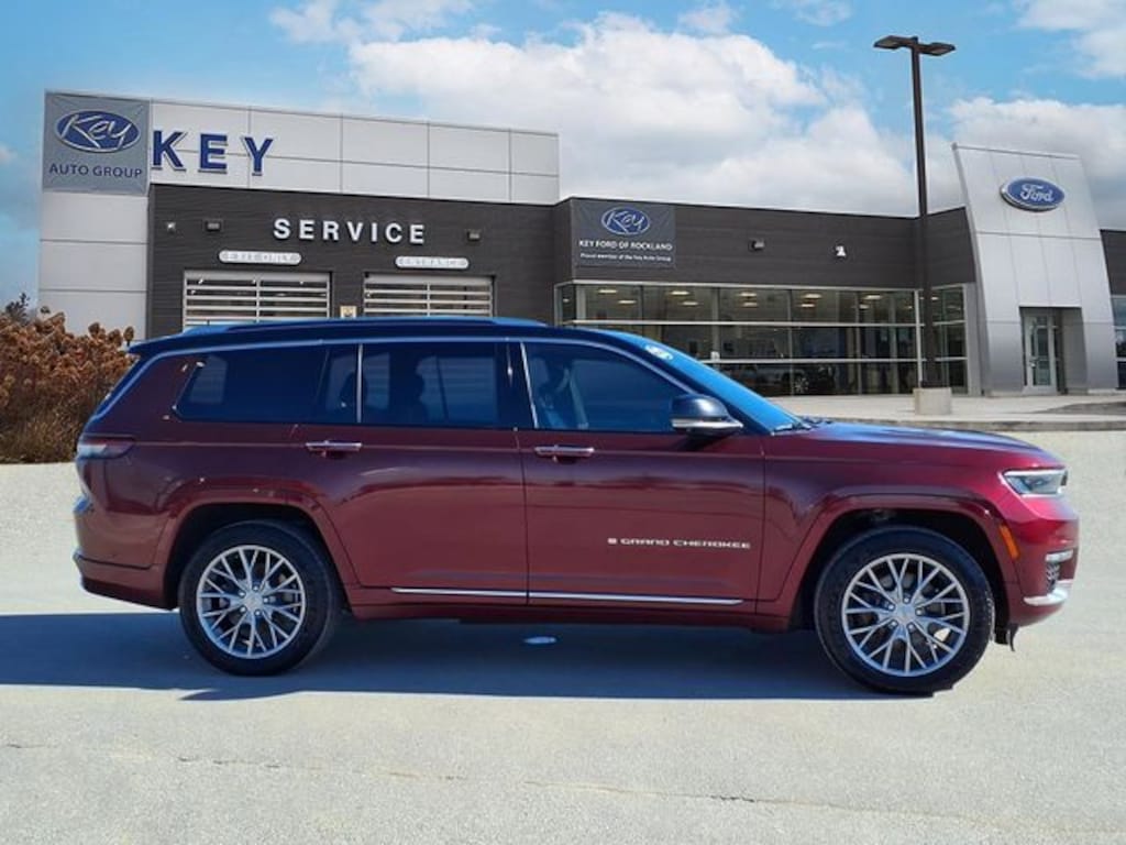 Key Ford of Rockland is proud to present you with another True Market Priced Pre-Owned Vehicle. Transparent Pricing Of $ 31399 !! This 2022 Jeep Grand Cherokee L Summit is loaded with the following Factory Options: Luxury Tech Group V (2nd Row Manual Window Shades and Wireless Charging Pad), Adaptive suspension, HEATED Leather steering wheel, Heated steering wheel, NAVIGATION System, Power driver seat, Power Liftgate, and Power moonroof Luxury Tech Group V (2nd Row Manual Window Shades and Wireless Charging Pad), Quick Order Package 22S, Two Tone Paint Group, Adaptive suspension, HEATED Leather steering wheel, Heated steering wheel, NAVIGATION System, Power driver seat, Power Liftgate, Power moonroof, 10 Speakers, 3.45 Rear Axle Ratio, 3rd row seats: split-bench, 4-Wheel Disc Brakes, ABS brakes, Active Noise Control System, Air Conditioning, Alloy wheels, AM/FM radio: SiriusXM with 360L, Anti-whiplash front head restraints, Audio memory, Auto High-beam Headlights, Auto-dimming door mirrors, Auto-dimming Rear-View mirror, Auto-leveling suspension, Automatic temperature control, Brake assist, Bumpers: body-color, Compass, Delay-off headlights, Driver door bin, Driver vanity mirror, Dual front impact airbags, Dual front side impact airbags, Electronic Stability Control, Emergency communication system, Four wheel independent suspension, Front anti-roll bar, Front Bucket Seats, Front Center Armrest w/Storage, Front dual zone A/C, Front fog lights, Front reading lights, Fully automatic headlights, Garage door transmitter, Genuine wood dashboard insert, Genuine wood door panel insert, Heated door mirrors, Heated front seats, Heated rear seats, Illuminated entry, Knee airbag, Low tire pressure warning, Memory seat, Nappa Leather Seats, Normal Duty Suspension, Occupant sensing airbag, Outside temperature display, Overhead airbag, Overhead console, Panic alarm, Passenger door bin, Passenger vanity mirror, Power door mirrors, Power Fold Seatbacks, Power passenger seat, Power steering, Power windows, Radio data system, Radio: Uconnect 5 Nav w/10.1" Display, Rain sensing wipers, Rear air conditioning, Rear anti-roll bar, Rear dual zone A/C, Rear reading lights, Rear seat center armrest, Rear window defroster, Rear window wiper, Reclining 3rd row seat, Remote keyless entry, Security system, Speed control, Speed-Sensitive Wipers, Split folding rear seat, Spoiler, Steering wheel memory, Steering wheel mounted audio controls, Tachometer, Telescoping steering wheel, Tilt steering wheel, Traction control, Trip computer, Turn signal indicator mirrors, Variably intermittent wipers, Ventilated front seats, Voltmeter, and Wheels: 20" x 8.5" Fully Painted Aluminum Silver!!