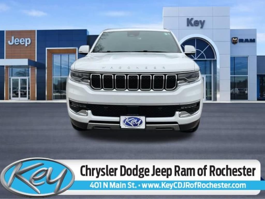 Key Chrysler Dodge Jeep Ram of Rochester is proud to present you with another True Market Priced Pre-Owned Vehicle. Transparent Pricing Of $ 38845 !! This 2022 Jeep Wagoneer Series III is loaded with the following Factory Options: Heads-Up Display Quick Order Package 22N, Heads-Up Display, 10 Speakers, 3.21 Rear Axle Ratio, 3rd row seats: bench, 4-Wheel Disc Brakes, ABS brakes, Adjustable pedals, Air Conditioning, Alloy wheels, AM/FM radio: SiriusXM with 360L, Anti-whiplash front head restraints, Audio memory, Auto High-beam Headlights, Auto-dimming door mirrors, Auto-dimming Rear-View mirror, Auto-leveling suspension, Automatic temperature control, Brake assist, Bumpers: body-color, Compass, Delay-off headlights, Driver door bin, Driver vanity mirror, Driver's Seat Mounted Armrest, Dual front impact airbags, Dual front side impact airbags, Electronic Stability Control, Exterior Parking Camera Rear, Four wheel independent suspension, Front anti-roll bar, Front Bucket Seats, Front Center Armrest w/Storage, Front dual zone A/C, Front fog lights, Front reading lights, Fully automatic headlights, Garage door transmitter, Genuine wood console insert, Genuine wood dashboard insert, Genuine wood door panel insert, Heated door mirrors, Heated front seats, Heated rear seats, Heated steering wheel, Illuminated entry, Knee airbag, Leather Trimmed Bucket Seats, Low tire pressure warning, Memory seat, Navigation System, Normal Duty Suspension, Occupant sensing airbag, Outside temperature display, Overhead airbag, Overhead console, Panic alarm, Passenger door bin, Passenger seat mounted armrest, Passenger vanity mirror, Pedal memory, Power adjustable front head restraints, Power door mirrors, Power driver seat, Power Liftgate, Power passenger seat, Power steering, Power windows, Radio data system, Radio: Uconnect 5 Nav w/10.1" Display, Rain sensing wipers, Rear air conditioning, Rear anti-roll bar, Rear dual zone A/C, Rear reading lights, Rear seat center armrest, Rear window defroster, Rear window wiper, Reclining 3rd row seat, Remote keyless entry, Security system, Speed control, Speed-sensing steering, Speed-Sensitive Wipers, Split folding rear seat, Steering wheel memory, Steering wheel mounted audio controls, Tachometer, Telescoping steering wheel, Tilt steering wheel, Traction control, Trip computer, Turn signal indicator mirrors, Variably intermittent wipers, Ventilated front seats, Voltmeter, and Wheels: 20" x 9.0" Premium 2 Aluminum!!