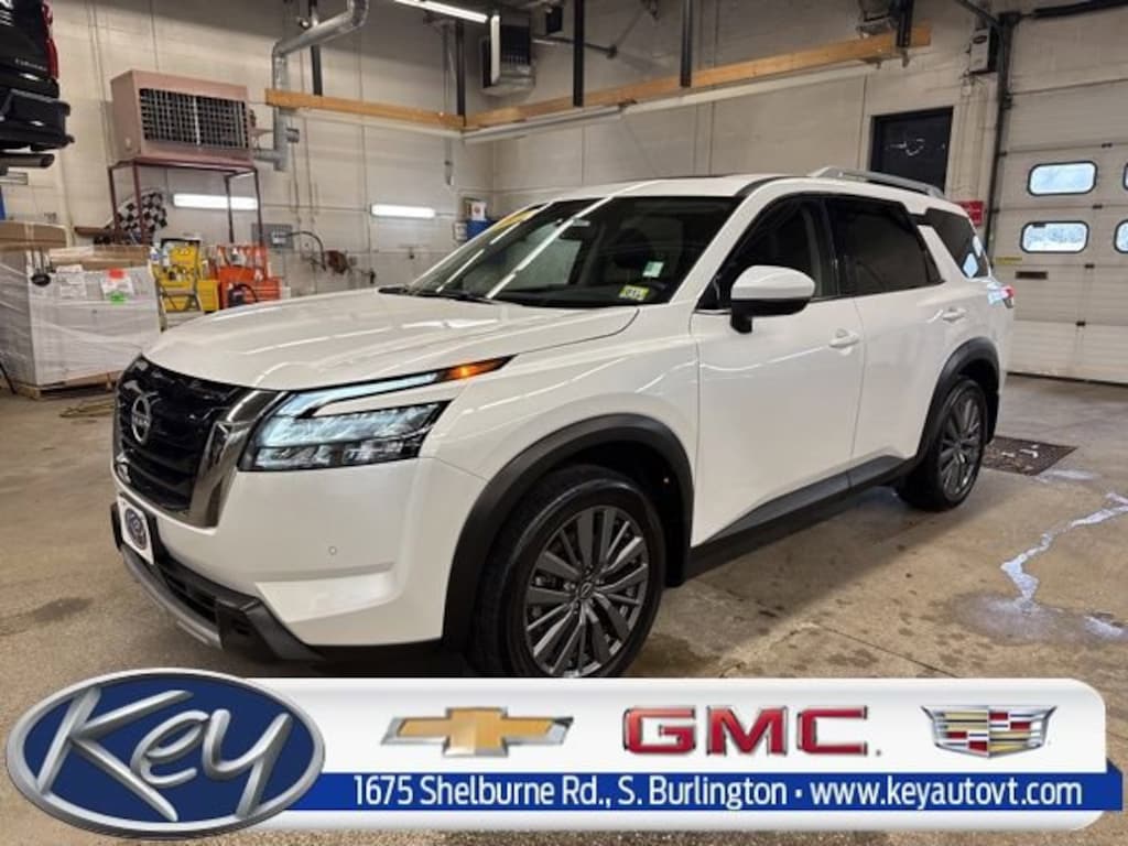Key Chevrolet Burlington is proud to present you with another True Market Priced Pre-Owned Vehicle. Transparent Pricing Of $ 35142 !! This 2025 Nissan Pathfinder SL is loaded with the following Factory Options: 4WD SL Premium Package (20 Painted Alloy Wheels, 2nd-Row Captain Chairs, 2nd-Row Rear Headrest, Bose Premium Audio System, Heated Rear Seats, Panoramic Moonroof, and Tow Hitch Receiver and Harness), 4WD, 3rd row seats: bench, 4-Wheel Disc Brakes, 6 Speakers, ABS brakes, Air Conditioning, Alloy wheels, AM/FM radio: SiriusXM, Auto High-beam Headlights, Auto-dimming Rear-View mirror, Automatic temperature control, Black Splash Guards (set of 4), Brake assist, Bumpers: body-color, Captain's Chairs Carpeted Floor Mats (set of 4), Cross Bars, Delay-off headlights, Driver door bin, Driver vanity mirror, Dual front impact airbags, Dual front side impact airbags, Electronic Stability Control, Emergency communication system, Exterior Parking Camera Rear, Four wheel independent suspension, Front anti-roll bar, Front Bucket Seats, Front Center Armrest, Front dual zone A/C, Front reading lights, Fully automatic headlights, Garage door transmitter: HomeLink, Heated door mirrors, Heated Front Bucket Seats, Heated front seats, Heated steering wheel, Illuminated entry, Knee airbag, Leather steering wheel, Leather-Appointed Seating Surfaces, Low tire pressure warning, Navigation system: NissanConnect with Navigation and Services, NissanConnect featuring Apple CarPlay and Android Auto, NissanConnect with Navigation and Services, Occupant sensing airbag, Outside temperature display, Overhead airbag, Overhead console, Panic alarm, Passenger door bin, Passenger vanity mirror, Power door mirrors, Power driver seat, Power Liftgate, Power passenger seat, Power steering, Power windows, Radio data system, Radio: AM/FM Audio System, Rear air conditioning, Rear anti-roll bar, Rear reading lights, Rear seat center armrest, Rear side impact airbag, Rear window defroster, Rear window wiper, Reclining 3rd row seat, Remote keyless entry, Security system, Speed control, Speed-sensing steering, Split folding rear seat, Spoiler, Steering wheel mounted audio controls, Tachometer, Telescoping steering wheel, Tilt steering wheel, Traction control, Trip computer, Turn signal indicator mirrors, Variably intermittent wipers, and Wheels: 18 x 8J Machined Alloy!!
