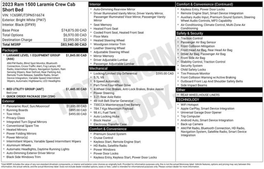 Key Chrysler Dodge Jeep Ram of Rochester is proud to present you with another True Market Priced Pre-Owned Vehicle. Transparent Pricing Of $ 41995 !! This 2023 Ram 1500 Laramie is loaded with the following Factory Options: Bed Utility Group (MOPAR 4 Adjustable Cargo Tie-Down Hooks, MOPAR Spray In Bedliner, and Pick-Up Box Lighting), Laramie Level 1 Equipment Group (12" Touchscreen Display, 2nd Row In Floor Storage Bins, 4G LTE Wi-Fi Hot Spot, Apple CarPlay, Auto High Beam Headlamp Control, Blind Spot & Cross Path Detection, Connected Travel & Traffic Services, Connectivity - US/Canada, Disassociated Touchscreen Display, Electric Shift-On-Demand Transfer Case, Foam Bottle Insert (Door Trim Panel), For Details, Visit DriveUconnect.com, For More Info, Call 800-643-2112, Front Door Accent Lighting, Front LED Fog Lamps, Global Telematics Box Module (TBM), Google Android Auto, GPS Antenna Input, GPS Navigation, HD Radio, Integrated Center Stack Radio, Integrated Voice Command w/Bluetooth, LED Reflector Headlamps, ParkSense Front/Rear Park Assist w/Stop, Radio: Uconnect 5 Nav w/12.0" Display, Rain Sensitive Windshield Wipers, Rear Door Accent Lighting, Rear Power Sliding Window, Rear Window Defroster, Remote Tailgate Release, SiriusXM Radio Service, SiriusXM w/360L, and USB Host Flip), 4-Wheel Disc Brakes, ABS brakes, Dome Dual LED Reading Lamp, Dual-Pane Panoramic Sunroof, and LED Dome/Reading Lamp Bed Utility Group (MOPAR 4 Adjustable Cargo Tie-Down Hooks, MOPAR Spray In Bedliner, and Pick-Up Box Lighting), Laramie Level 1 Equipment Group (12" Touchscreen Display, 2nd Row In Floor Storage Bins, 4G LTE Wi-Fi Hot Spot, Apple CarPlay, Auto High Beam Headlamp Control, Blind Spot & Cross Path Detection, Connected Travel & Traffic Services, Connectivity - US/Canada, Disassociated Touchscreen Display, Electric Shift-On-Demand Transfer Case, Foam Bottle Insert (Door