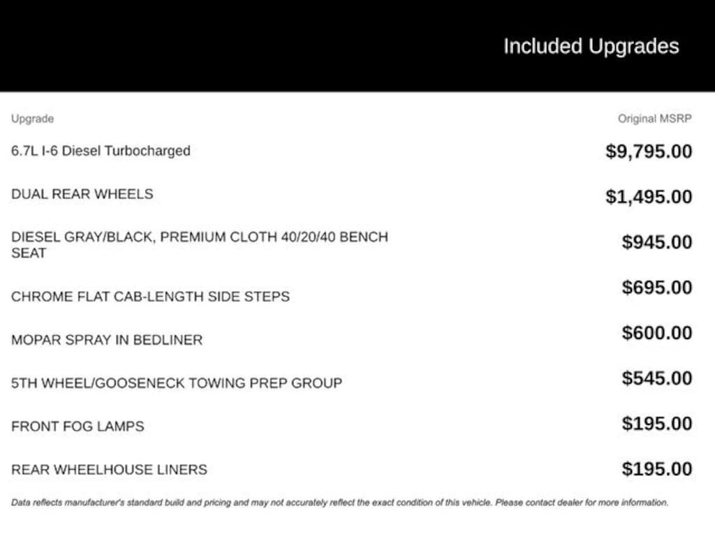 Key Chrysler Dodge Jeep Ram Newcastle is proud to present you with another True Market Priced Pre-Owned Vehicle. Transparent Pricing Of $ 53495 !! This 2024 Ram 3500 Big Horn is loaded with the following Factory Options: Level 1 Equipment Group (2 Way Rear Headrest Seat, 2nd Row In Floor Storage Bins, 4 Way Front Headrests, 40/20/40 Split Bench Seat, 4G LTE Wi-Fi Hot Spot, 8.4" Touchscreen Display, All R1 Low Radios, All Radio Equipped Vehicles, Apple CarPlay, Auto Power-Folding Mirrors, Black Exterior Mirrors, Bluetooth Handsfree Phone & Audio, Center Hub, Connectivity - US/Canada, Dual Glove Boxes, Exterior Mirrors Courtesy Lamps, Exterior Mirrors w/Heating Element, Exterior Mirrors w/Supplemental Signals, Foam Bottle Insert (Door Trim Panel), Footwell Courtesy Lamp, For Details Visit DriveUconnect.com, For More Info, Call 800-643-2112, Forward & Reverse Utility Lights, Front Armrest w/Cupholders, Front Center Seat Cushion Storage, Front Fog Lamps, Front Seat Back Map Pockets, Global Telematics Box Module (TBM), Glove Box Lamp, Google Android Auto, GPS Antenna Input, Integrated Center Stack Radio, Integrated Voice Command w/Bluetooth, Leather Wrapped Steering Wheel, Locking Lower Glove Box, Manual Adjust 4-Way Front Passenger Seat, Mirror Running Lights, Power Adjust 8-Way Driver Seat, Power Adjust Mirrors, Power Heated Fold Telescopic Mirrors, Power Telescoping Mirrors, Power-Adjustable Convex Aux Mirrors, Premium Cloth 40/20/40 Bench Seat, Radio: Uconnect 5 w/8.4" Display, Rear 60/40 Folding Seat, Rear Dome w/On/Off Switch Lamp, Remote USB Port - Charge Only, Selectable Tire Fill Alert, SiriusXM Radio Service, SiriusXM Satellite Radio, Steering Wheel Mounted Au